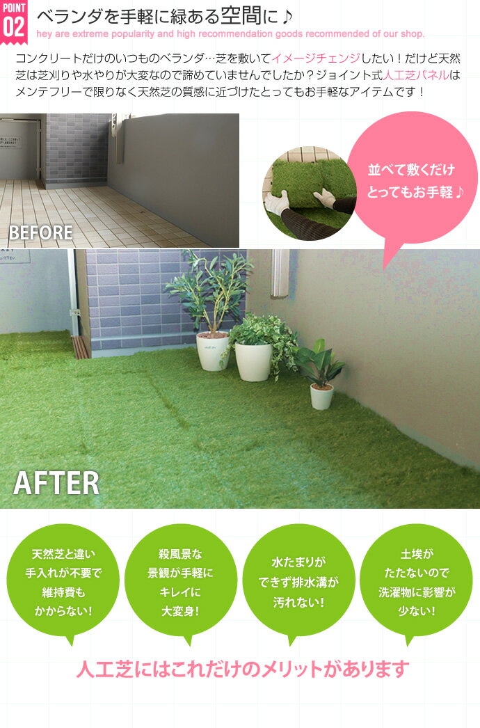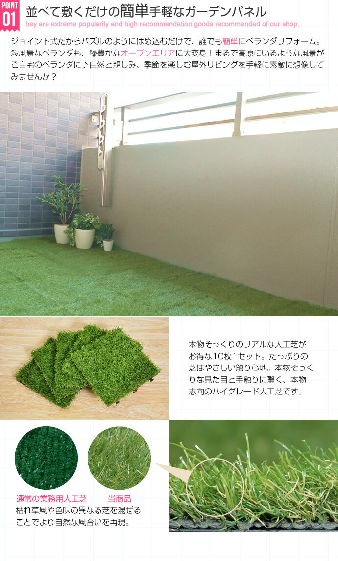 メンテナンスフリー、限りなく天然芝の質感に近付けたジョイントパネルでとってもお手軽なアイテム!